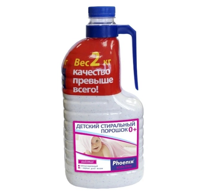 La gamme Phoenix de détergents à lessive est représentée par une poudre à laver et un gel à haute concentration. Le fabricant suggère d'utiliser une composition liquide pour le lavage choses pour enfants.